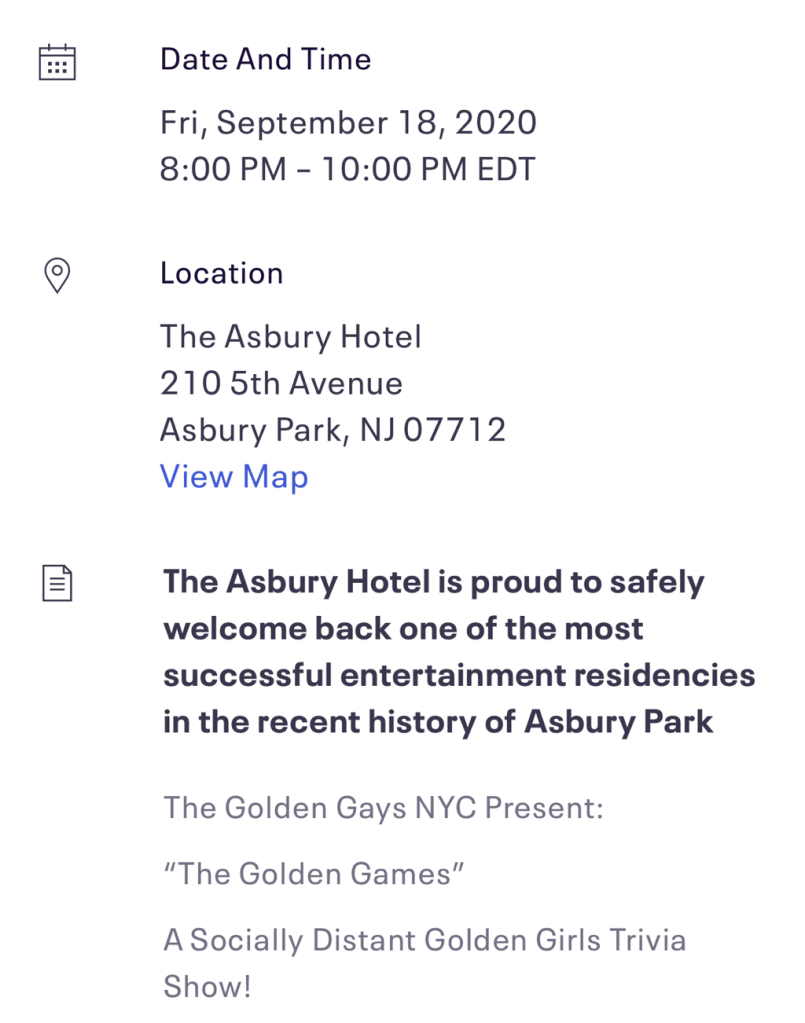 GGNYC socially distanced Game Show plays Asbury Park, NJ on Friday 9/18 at 8pm.